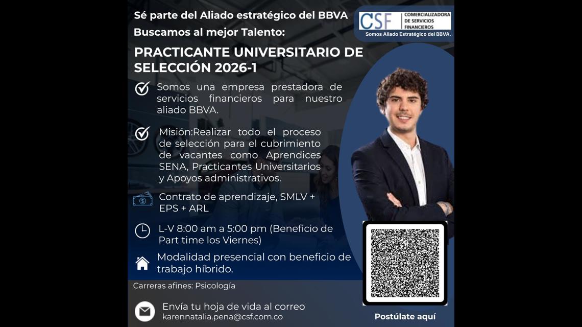 Buscamos un Practicante de Selección para unirse a nuestro equipo en Comercializadora de Servicios Financieros S.A.S. Si tienes una formación en Psicología y te apasiona la selección de talento, esta oportunidad es para ti.